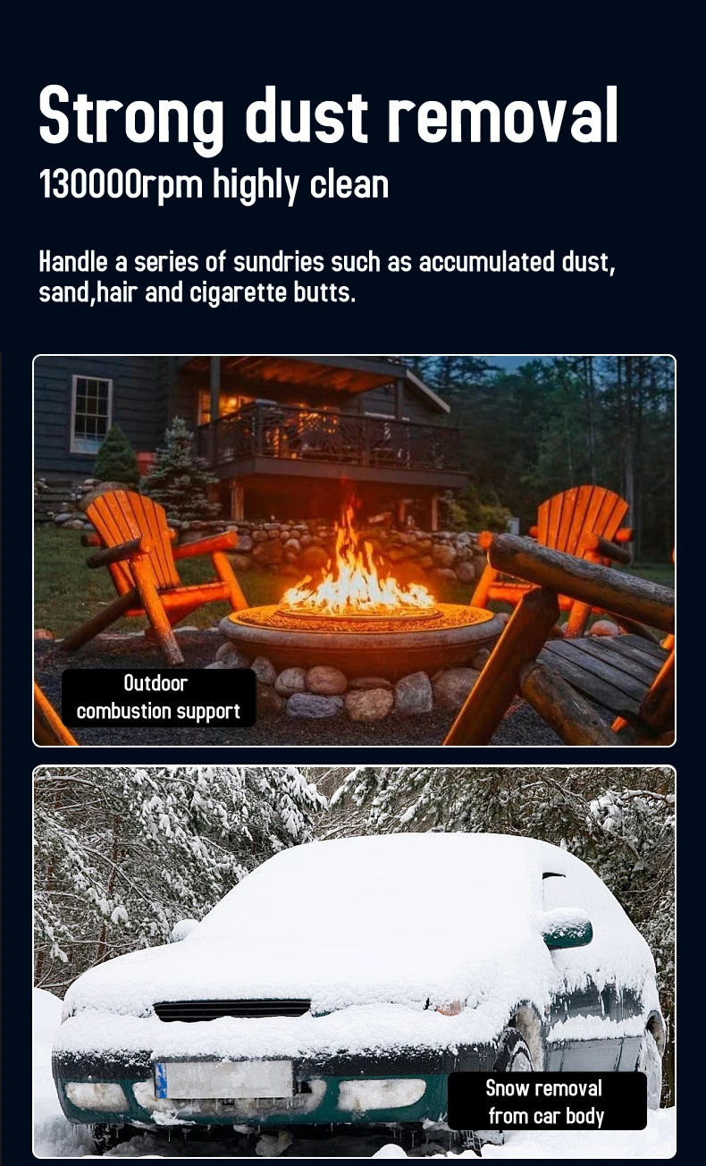 【Vielfältige Anwendungsmöglichkeiten】: Geeignet zum Ausblasen von Kohlenfeuer, industriellen Staubausblasen, Rußausblasen, Tastaturreinigung, Auto- und Motorradreinigung, Automittelkonsolenreinigung, Autospaltreinigung, Fußmattenkrümelreinigung, Picknick-Müllreinigung usw.